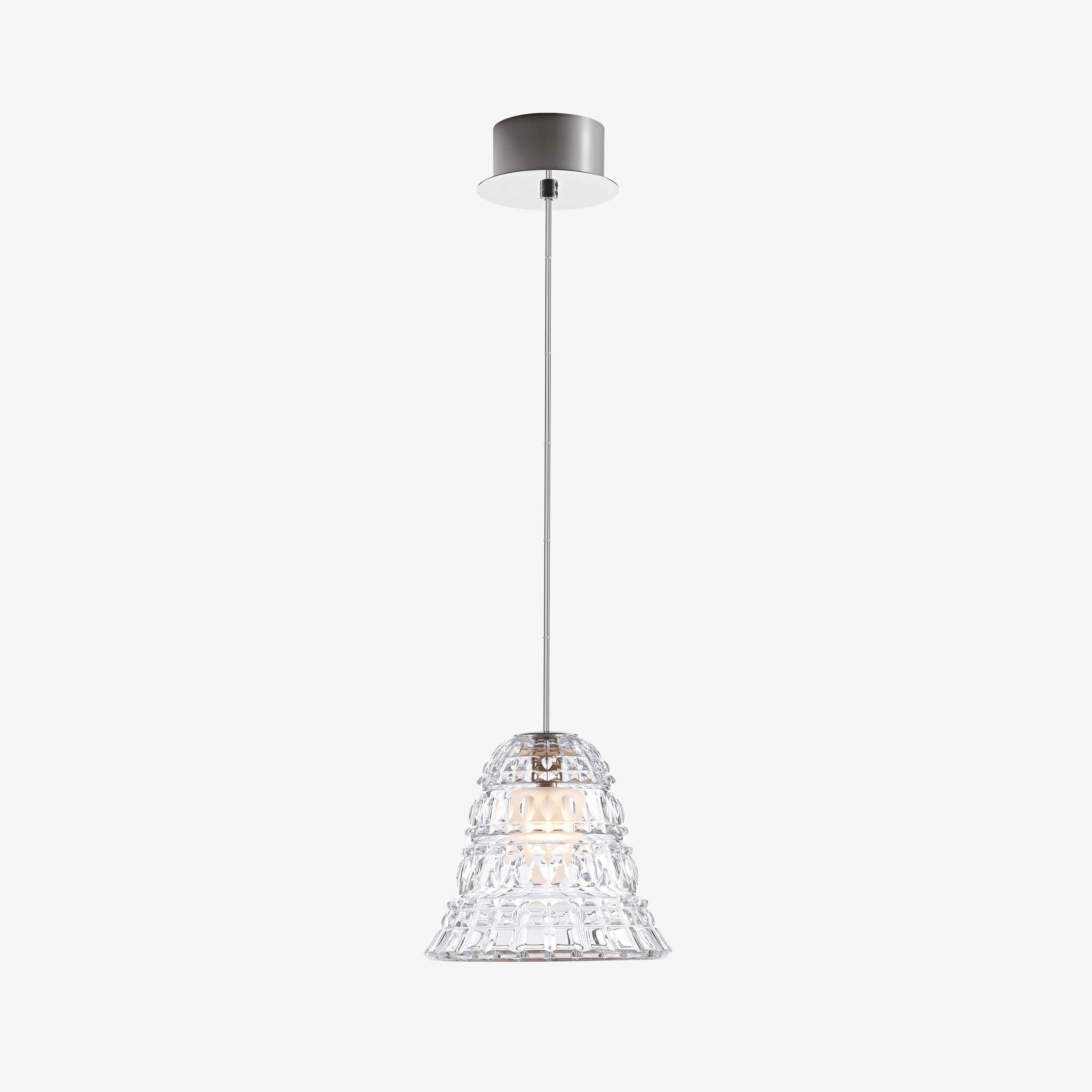 A master in the art of harmoniously blending past and future, craftsmanship and innovation, whether stylistic or technical, Marcel Wanders drew inspiration from Baccarat's emblematic chandelier clochettes to design a lighting collection imbued with elegance and enchantment. Like a suspended dream, its clochettes dance in the air, held in place by an almost invisible thread. Adorned with the New Antique cut motif, they amplify light in a symphony of sparkling reflections.
