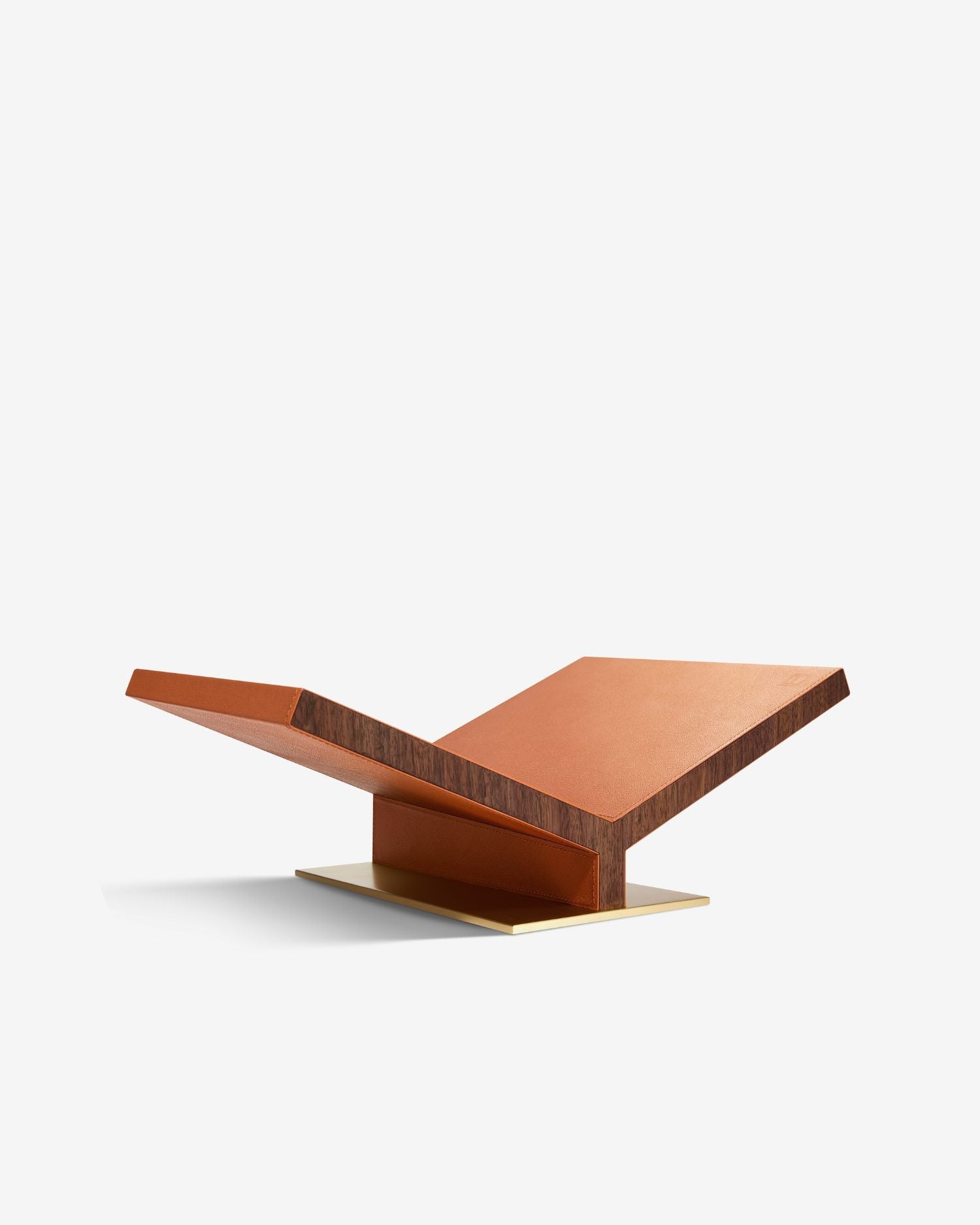 The Collector Bookstand is a striking conversation piece. Its majestic form, made from walnut wood and covered in pebbled leather, rests upon a brushed-brass stand, elevating the object into a piece of sculpture. Available in Ultimate and Classic sizes, and a refined assortment of leather tones, the Collector Bookstand enhances both the dimension and the aesthetic of any book it holds.