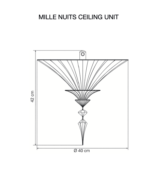 Unique expression of a revisited Eastern world, the “Mille Nuits“ collection evokes the baroque refinement of Persian legends and the splendour of the palaces of Arabian Night. The Venetian style cut embraces the contours of a ceiling lamp of a diameter of 40 or 50 cm, to provide a new dimension in light. Created in clear crystal or with a blue prism, this modern evolution of the famous chandelier is a perfect fit for today’s interiors.