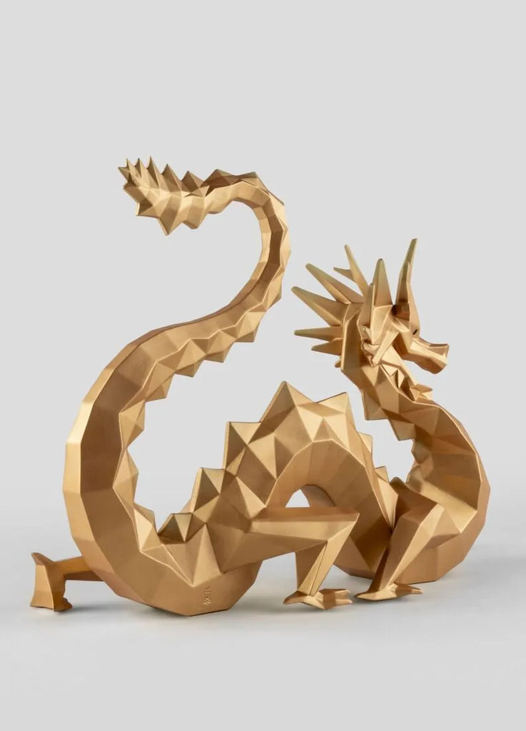 Escultura de porcelana de un dragón dorado, inspirada en el arte del origami. Edición limitada de 888 unidades.