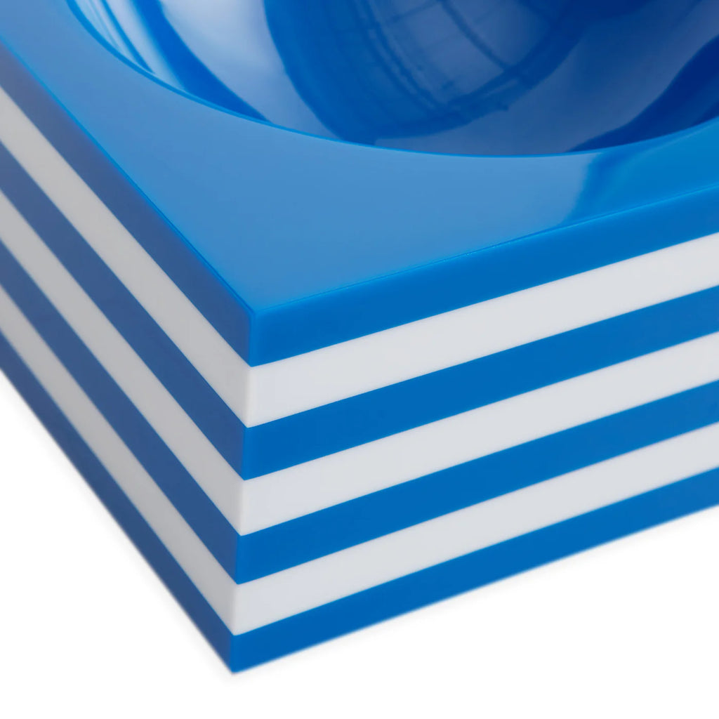Crafted from solid, hand-poured opaque acrylic in bold and breezy blue and white stripes. Our Cabana Mini Scoop Vase is a touch of seaside chic for any cocktail table or console—a little poppy, a little nouveau nautical, and very versatile. Hand-polished for a luminous shine.