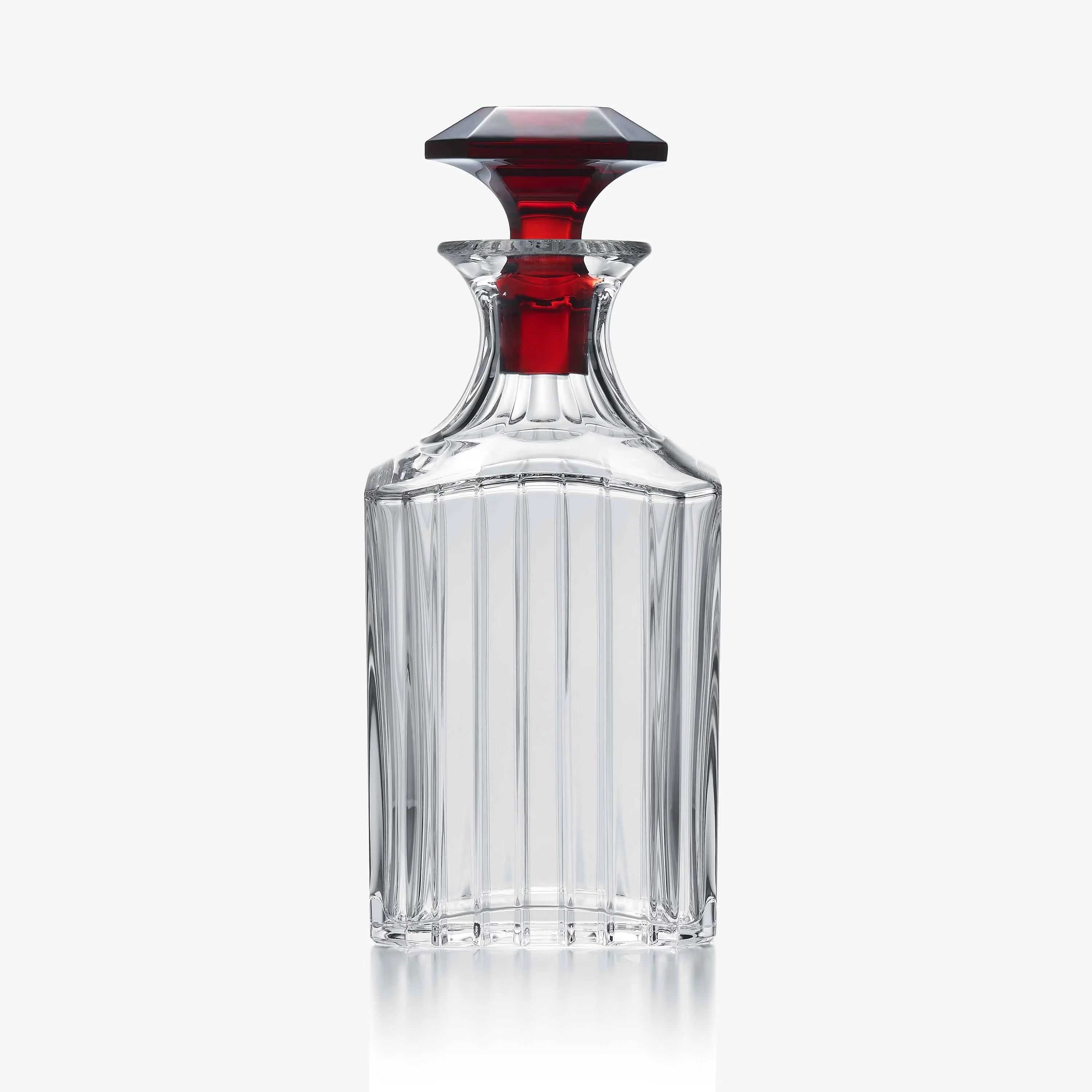 Baccarat unveils a collection of its iconic decanters crowned with a red crystal stopper, the Maison's signature color. Symbolizing fire, love, and passion, red is an energizing hue that stimulates the senses. With its deep intensity, Baccarat red is the result of fusing clear crystal with 24-carat gold powder. Like Baccarat chandeliers adorned with a distinctive red crystal tassel, these Harcourt, Harmonie, and Louxor wine or spirit decanters embody refined craftsmanship and add a festive, joyful touch of color to any occasion. The Harmonie collection is a contemporary icon for mixology enthusiasts and lovers of rare whiskies. With its vertical lines and pure form, the Harmonie Whisky decanter is distinctive for its timeless elegance. Its cut crystal reveals a singular magic, reflecting the colors of your favorite beverages.