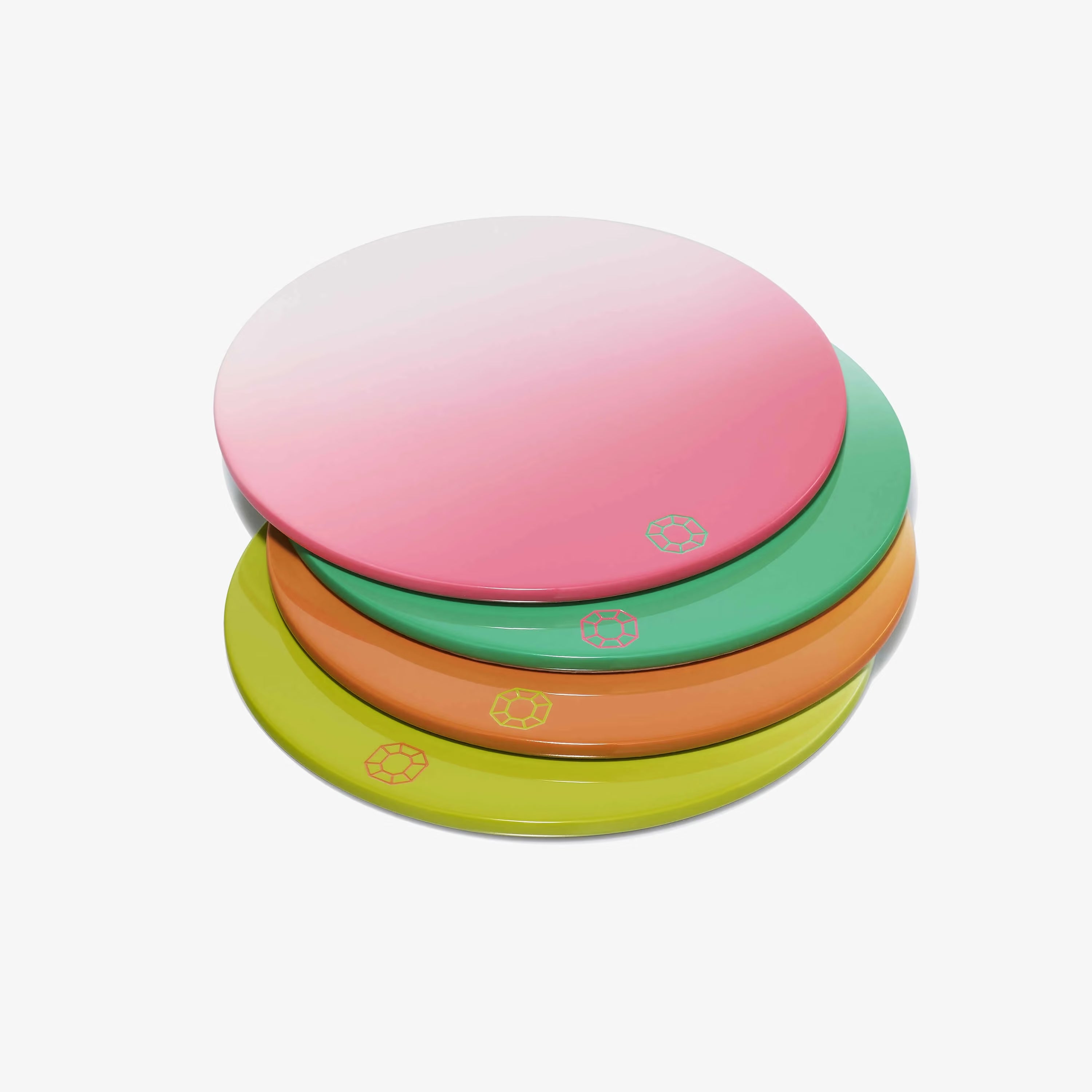 Octogone coasters are adorned with the Baccarat Colors of Joy, in a palette of gradients of four intense hues: green, moss, orange and red. Hand-crafted using ancestral artistry, these lacquer coasters feature a distinctive engraved signature octagon, the iconic symbol of Baccarat chandeliers. Their radiant surface captures the light, enhancing the sparkle of crystal. Perfect companions to Harmonie Colors of Joy glasses, Octogone seamlessly blends into the entire Baccarat barware universe, adding a striking touch of color to any tasting or sharing moment.