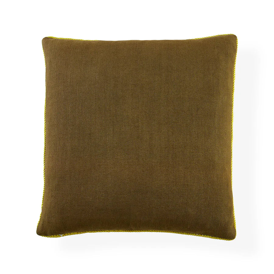 Our bestselling Pompidou pillows, now in a palette that matches moody tones with hot hues. Pairing 70s inspired patterns with dimension for added oomph, each style features colored linen embellished with a raised satin stitch and a corded edge. Group them for a strong statement, or pop one wherever your room needs a boost.