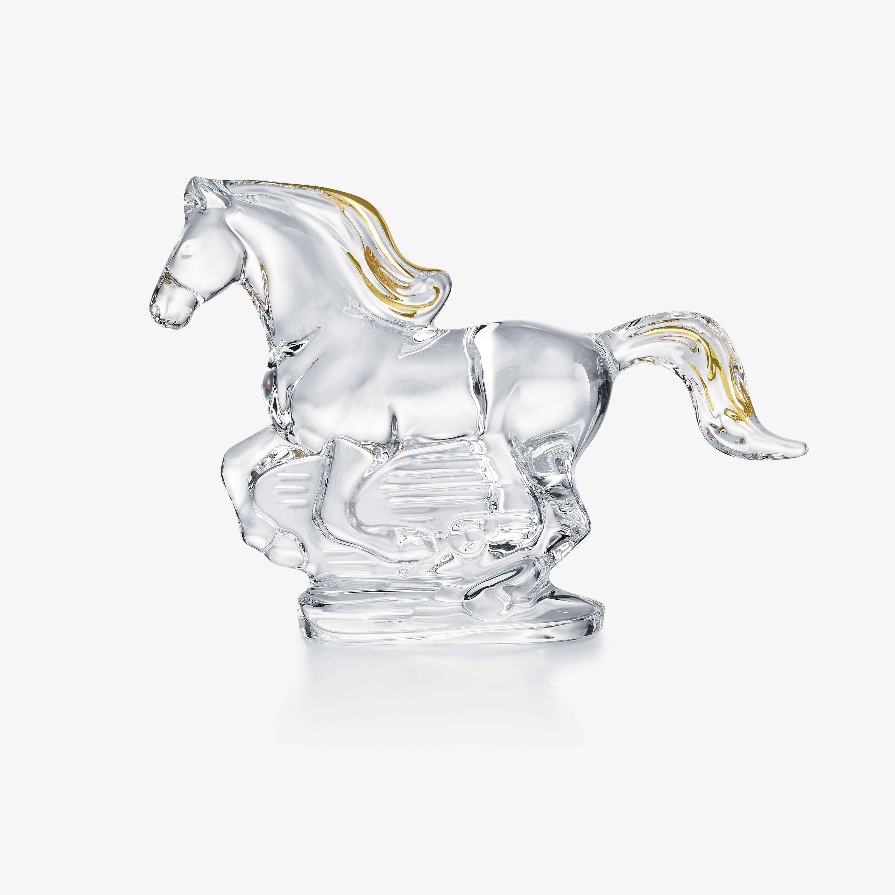 Baccarat celebrates the Year of the Horse with a creation full of spirit and vitality. Born from the expert craftsmanship of the Maison’s artisans, the Baccarat horse is sculpted in motion, mane flowing in the wind—embodying the boldness of those who forge their own path. Conceived by artist Allison Hawkes, the piece captures the power and refined grace of the horse, enhanced by the crystal’s scintillating reflections. The gold, which enhances its mane and tail, is delicately applied with the precision of Baccarat’s gilders.Emerging from the purity of crystal, the Baccarat Horse pays tribute to the fiery energy of the seventh animal in the Chinese zodiac, illuminating aspirations.
