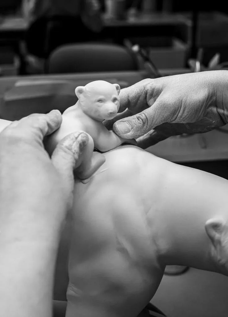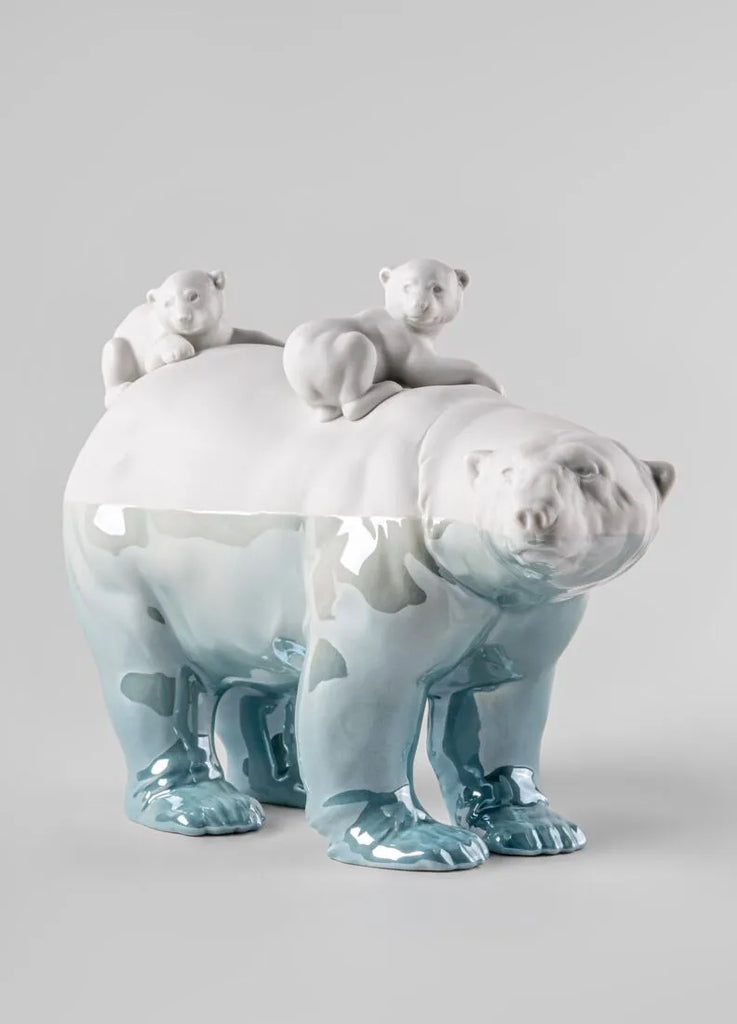 Escultura de porcelana que representa una emotiva escena de naturaleza protagonizada por una entrañable familia de osos.