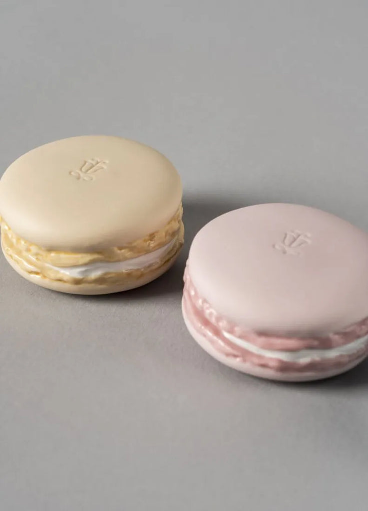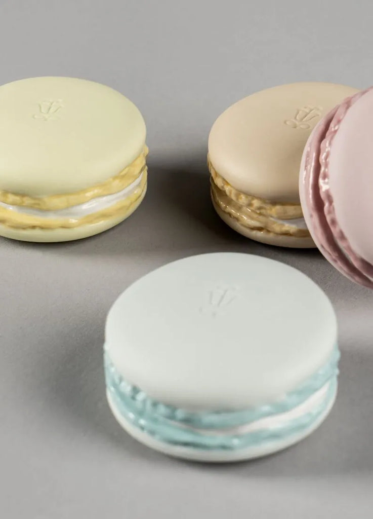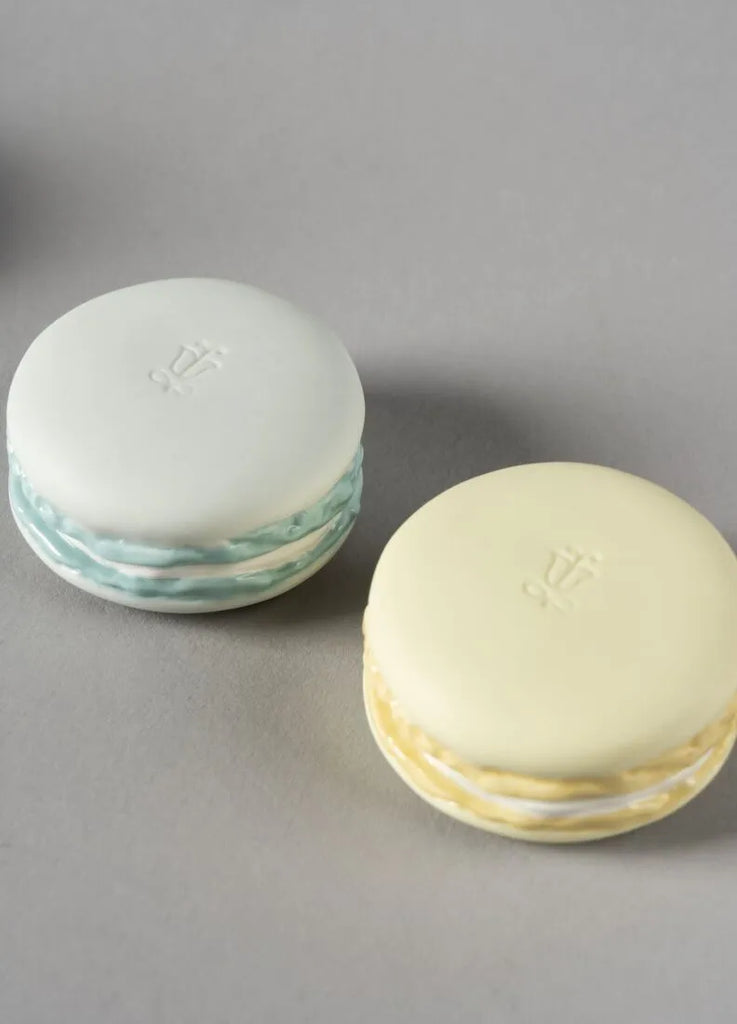 Pieza de porcelana que reproduce los exquisitos y popularesmacarons, los más famosos pasteles de la repostería francesa.