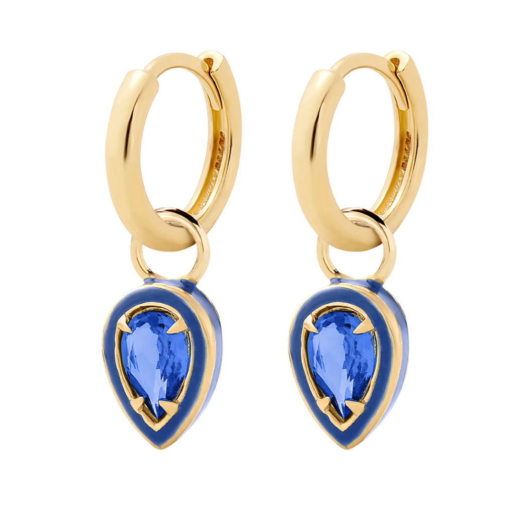 Pear Shape Enamel Halo Gold Huggie Sapphire Yellow Gold (Pair)