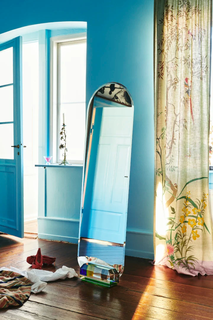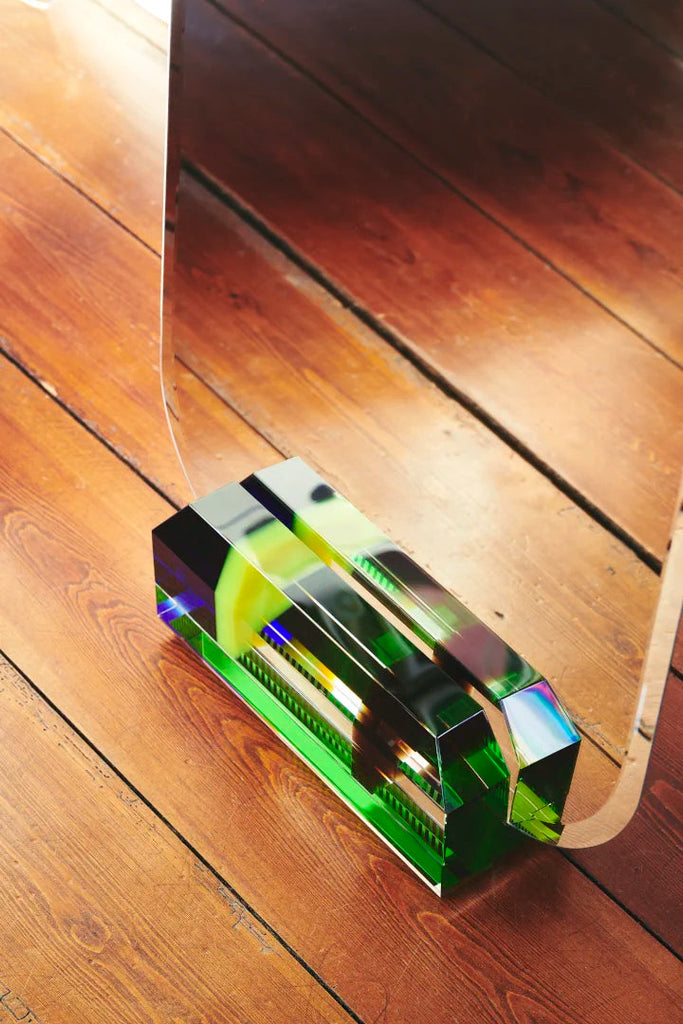 Material: Mirror: Handcrafted 0.3 mm mirror with black velvet on back | Base: Fine hand cut crystal
