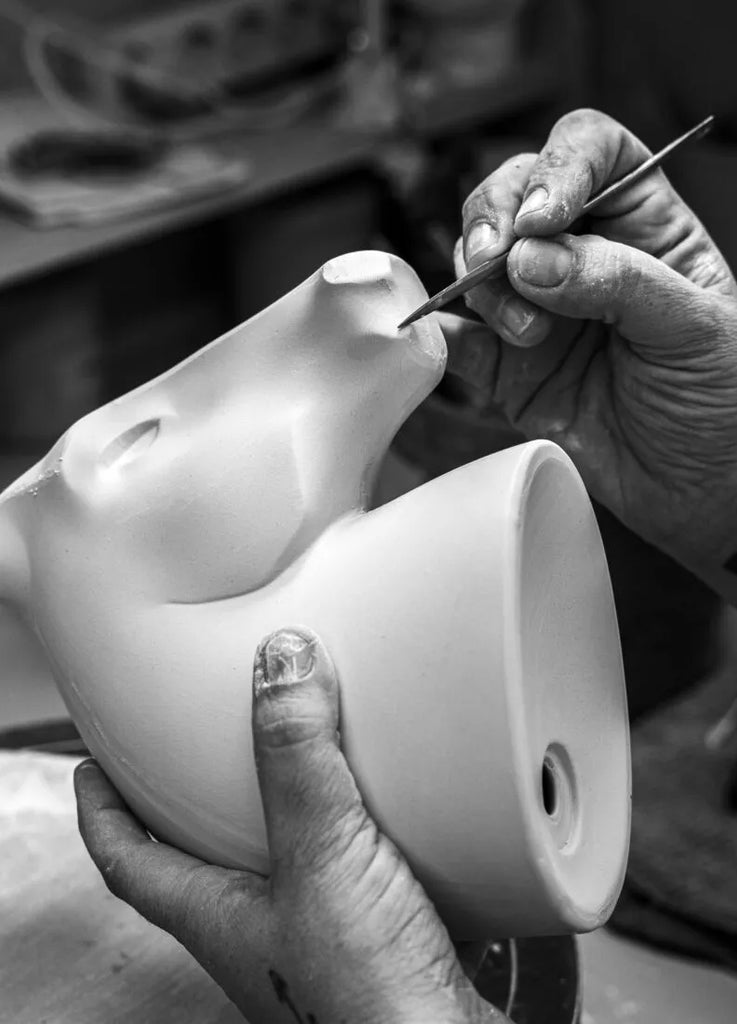 El Caballo (rojo-oro) forma parte de una colección que reinterpreta los doce animales del Zodiaco Chino desde un tratamiento de las formas más depurado. Esta serie busca capturar la esencia de una tradición milenaria mediante un lenguaje que se aleja de una visión realista. A partir de ahí, surgen propuestas como esta cabeza de caballo, de líneas primarias y decoración bicolor.