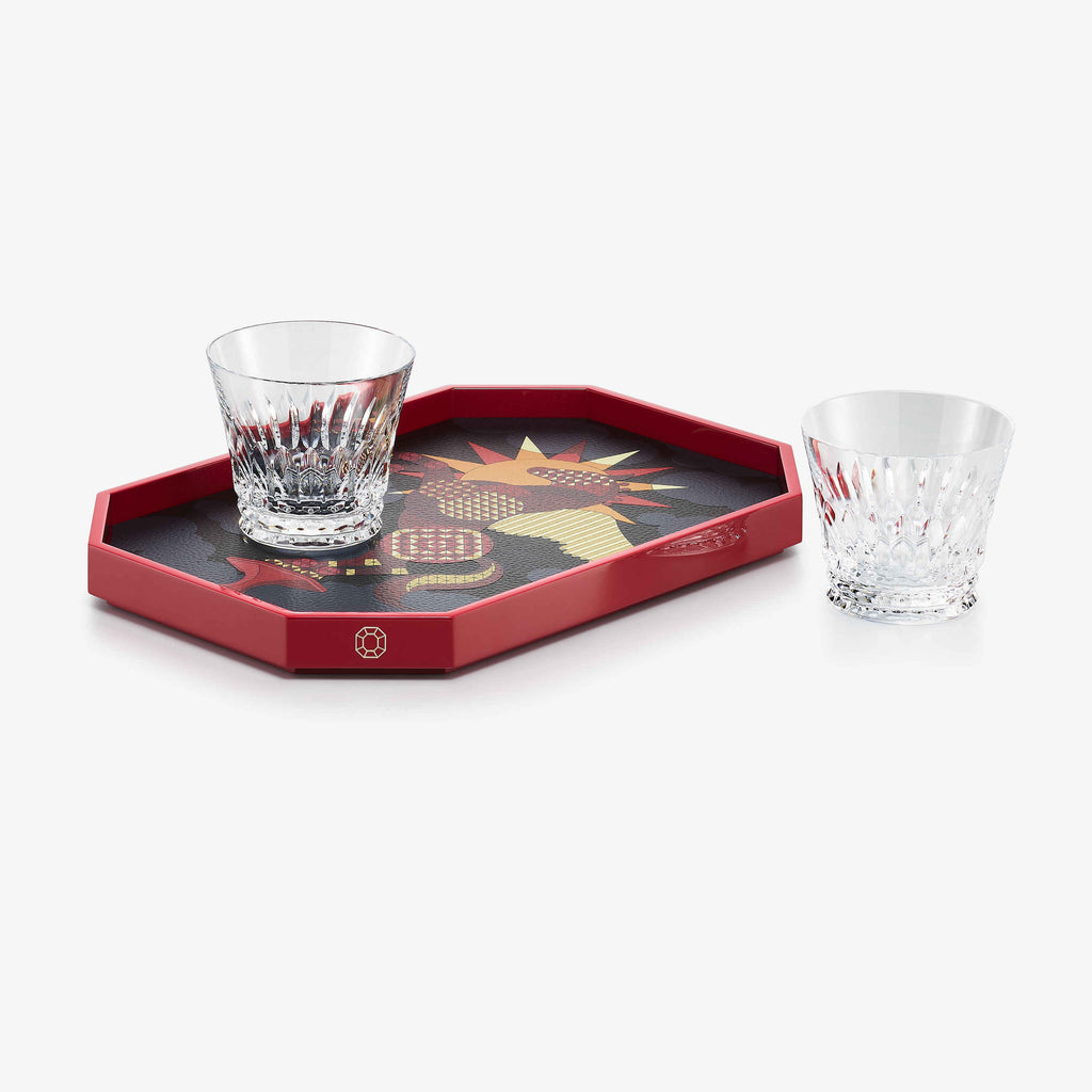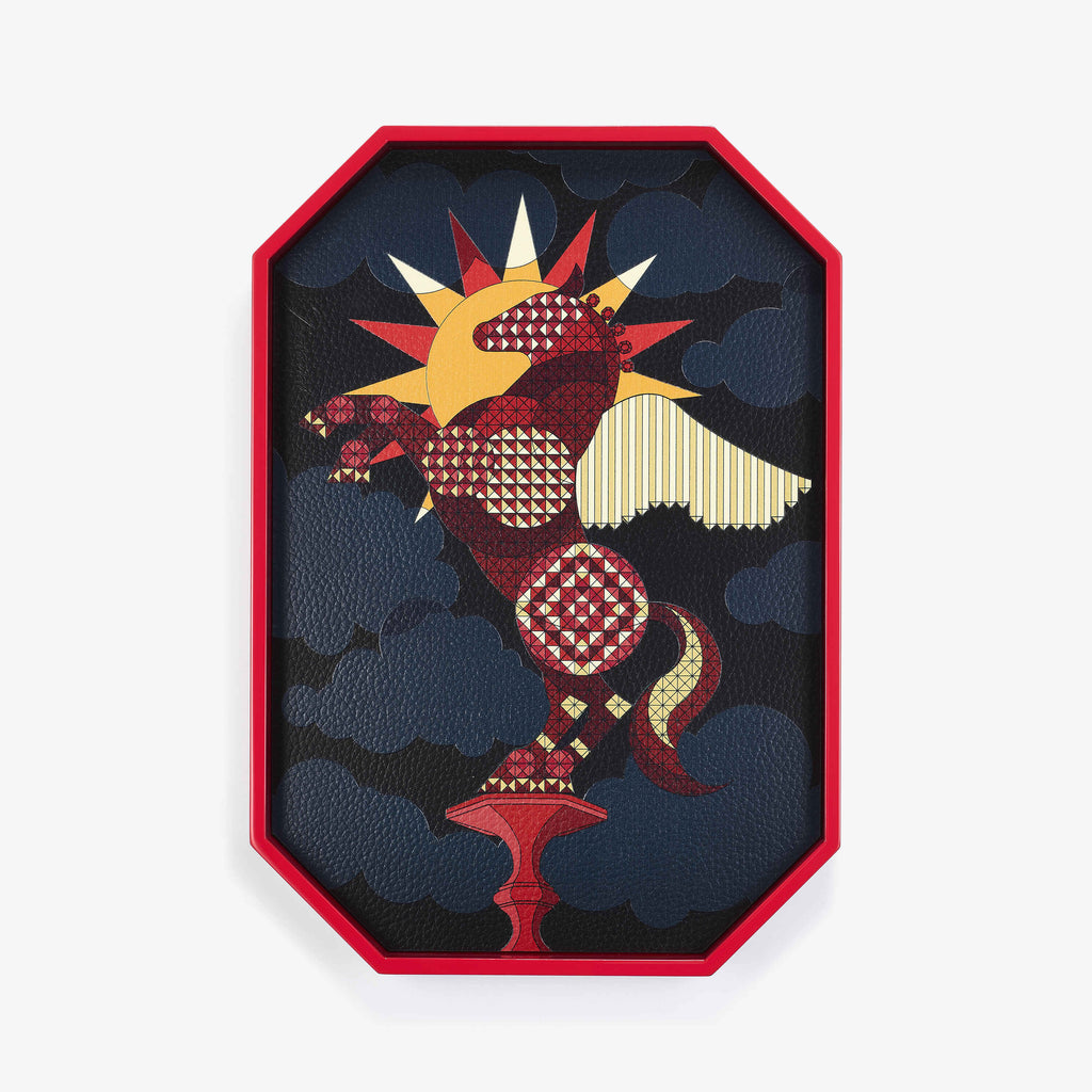 Baccarat’s small red Octogone tray takes on a bold new identity to celebrate the Year of the Horse in 2026. It features a removable insert crafted from recycled leather, enhanced with an original Pegasus illustration. Depicted in a majestic posture, the legendary winged horse stands proudly atop a Harcourt glass used as a pedestal — a nod to the Maison’s timeless icon. The drawing, composed of graphic, stylized lines, pays tribute to the precision of Baccarat’s master cutters. Meticulously handcrafted using ancestral artistry, the Octogone tray is a beautiful, lacquered piece, available in 3 sizes. Inspired by the Maison’s emblematic red octagonal pendant, it captures the light and accentuates the radiance of Baccarat crystal creations. The leather insert, in contrast with the brilliant surface, creates an elegant contrast of materials and textures. Both decorative and functional, the tray enhances every moment — a stylish interlude, drinks with friends, or a shared experience.