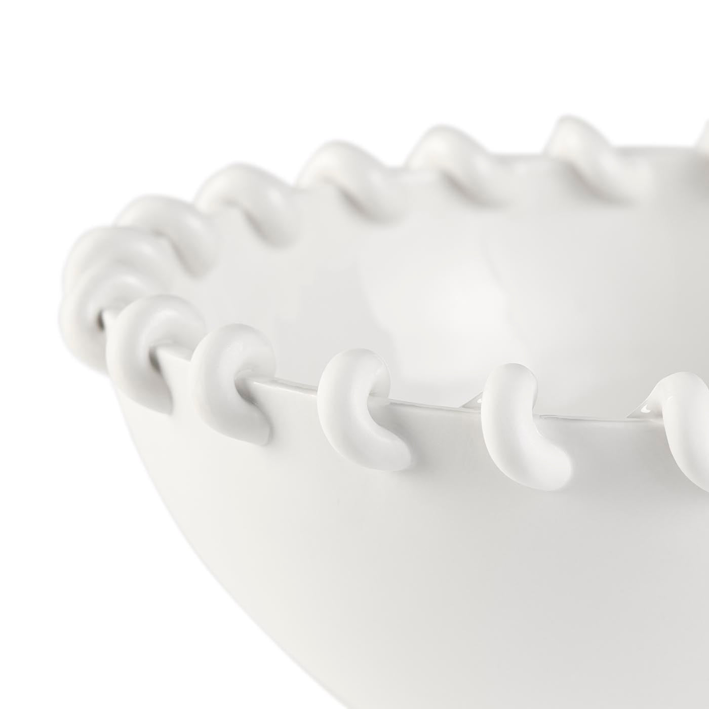 Inspired by French 50s pottery, our Rivoli bowl collection's twisted woven clay details are juxtaposed with a modernist elemental base form. Each loop is hand applied to create a woven rope effect around the edge of the bowl. Available in two sizes.
