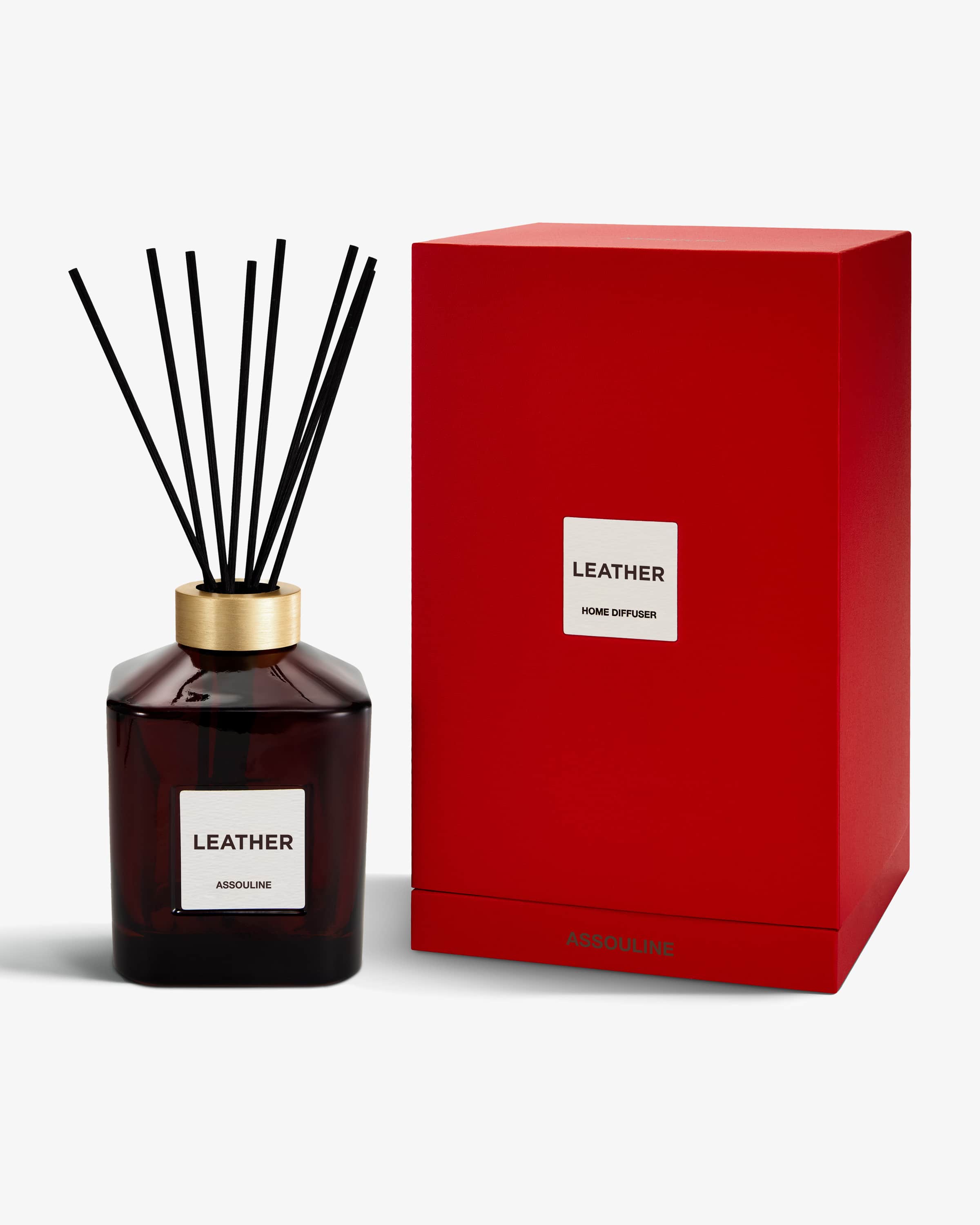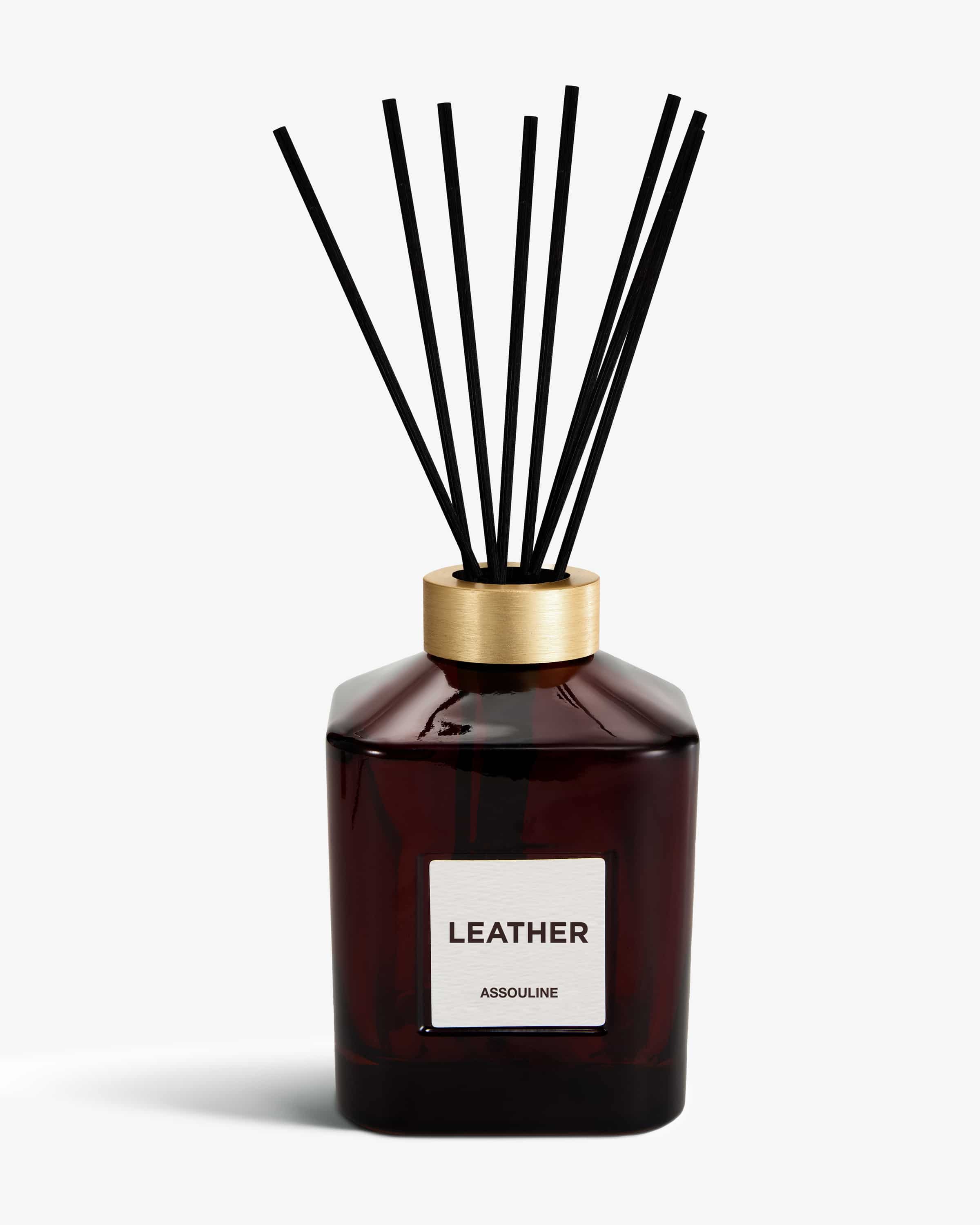 Leather Library Diffuser 350ml from Assouline. The diffuser presents itself with the sophisticated scent of old books and comfortable leather sofas and is complemented by spicy notes of clove, tobacco and woody vetiver.