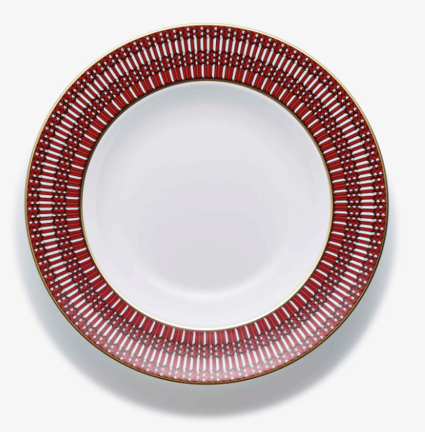 The Arcadia Red collection is a porcelain service comprising four sizes of plates and a “timbale”. Adorned with the Arcadia pattern, the dazzling white porcelain is enhanced by Baccarat's signature red and precious touches of gold. An ode to joie de vivre, the Arcadia Red service harmonizes vibrantly with Baccarat’s crystal creations, accompanying moments of sharing and celebration. Arcadia is the pattern inspired by the arched windows of Baccarat’s Manufacture, celebrating what happens behind them, where for generations, passionate artisans have been creating outstanding masterpieces to enchant the world.