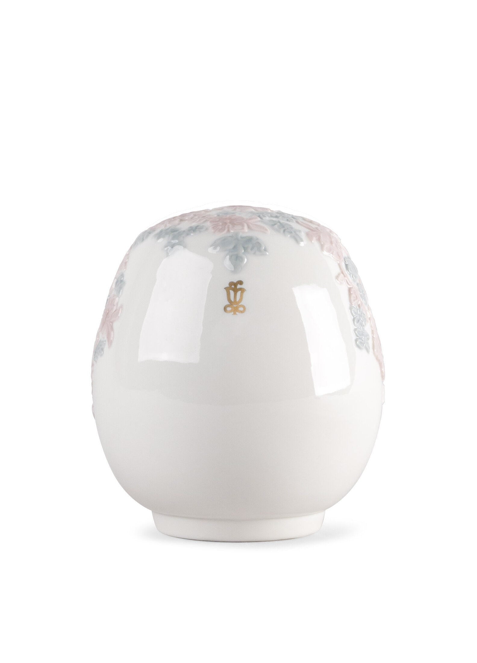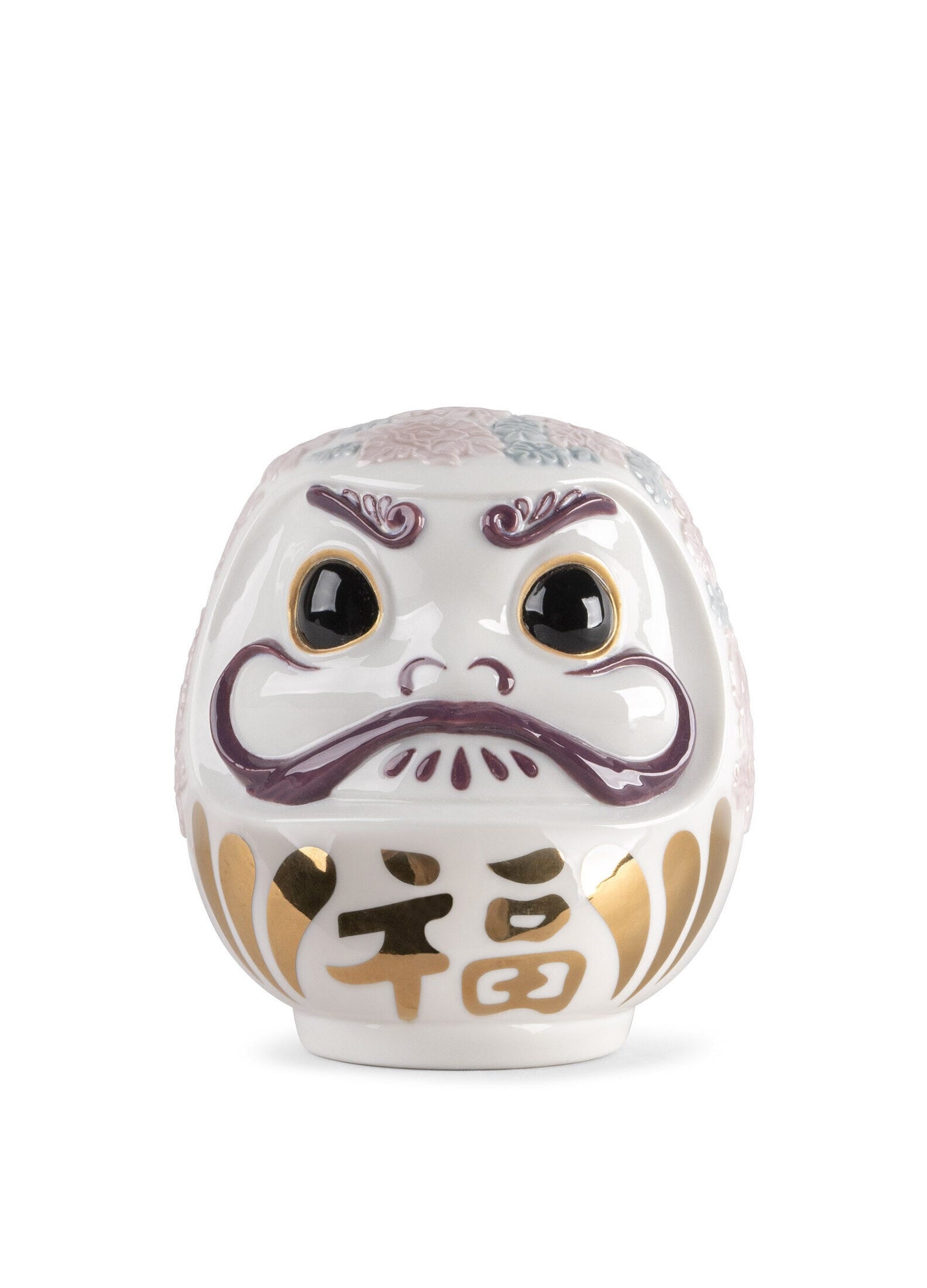 Por primera vez, los artistas de Lladró se inspiran en los tradicionales Daruma japoneses. Los Daruma originales se elaboran en cartón y, una vez alcanzado el reto, se queman en ofrenda de gratitud. Los Daruma de Lladró se elaboran en porcelana brillo y simbolizan los propósitos ya alcanzados y los nuevos que nos planteemos. Para su decoración se ha optado por una versión en rosa y otra en azul, con toques de lustre dorado. Ambos cuentan con una laboriosa ornamentación floral, grabada a mano, y llevan escrito, con los tradicionales sinogramas japoneses, el término Felicidad.