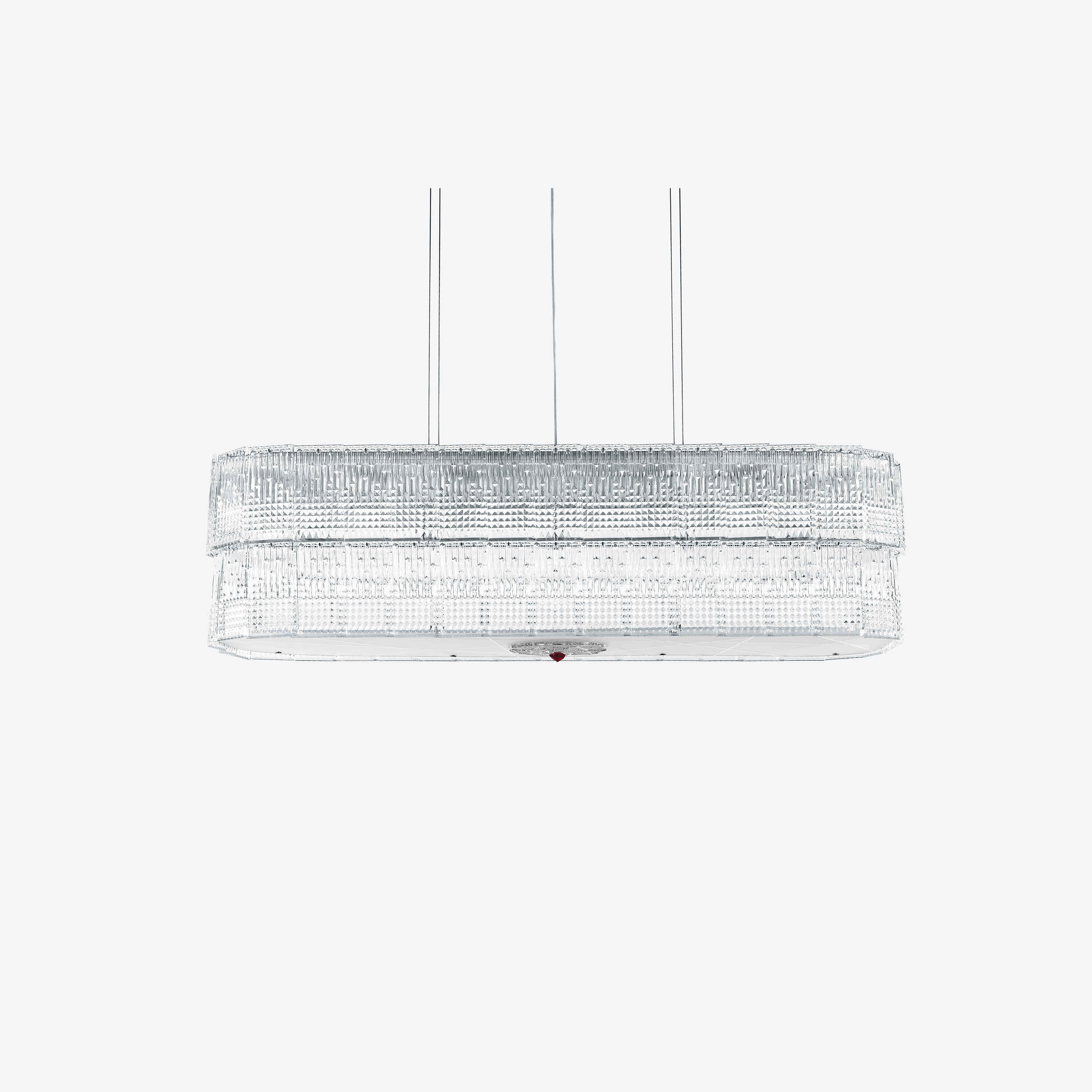 Arik Levy has designed a rectangular interpretation of the Tuile de Cristal chandelier. With the allure of a sculpture, this radiant block of light creates an ambience of captivating energy. By inventing an original crystal archetype, bearing a Piccadilly or Frozen pattern, artist Arik Levy has reflected the light of Baccarat in a completely new way. Between architecture and design, the Tuile de Cristal collection offers an entire repertoire of modern and daring creations. Modular and innovative, assembled as contemporary wall lights or majestic chandeliers, the tiles can take on an infinity of shapes and fit harmoniously into any interior.